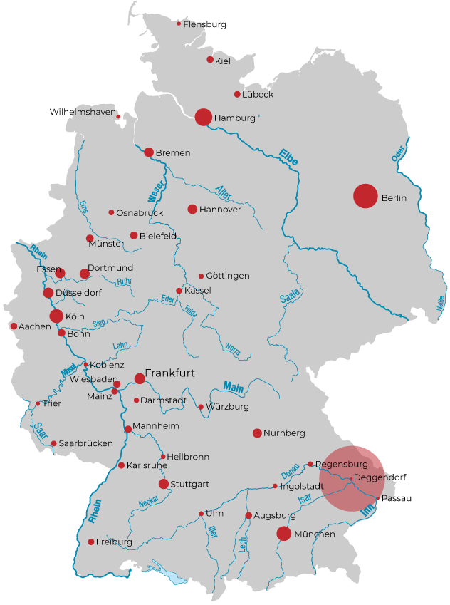 Deggendorf im niederbayerischen Landkreis Deggendorf ist eine Große Kreisstadt mit über 36.000 Einwohnern.