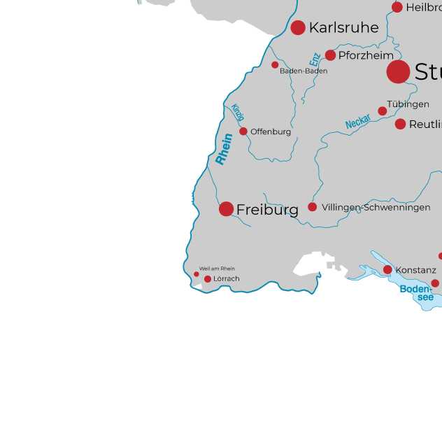 Europäische Nachbarstädte wie beispielsweise Straßburg spielen eine wichtige politische und wirtschaftliche Rolle für die verkehrsgünstig gelegene Hochschulstadt am Fluss Dreisam, die auch für Ihre Messen und Kongresse bekannt ist.
