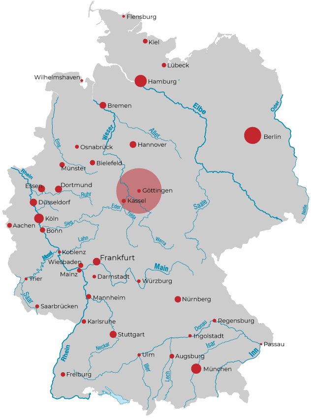 Die Universitätsstadt Göttingen ist mit rund 134.000 Einwohnern die größte Stadt im gleichnamigen Landkreis im Süden Niedersachsens und ein Oberzentrum des Bundeslandes. Die ehemals kreisfreie Stadt wurde 1964 zur Kreisstadt, ist aber nach wie vor den kreisfreien Städten gleichgestellt.