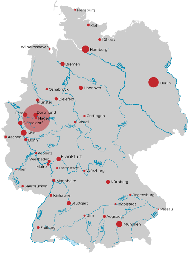 Die kreisfreie Großstadt Hagen liegt in Nordrhein-Westfalen zwischen dem Ruhrgebiet und dem Sauerland, weshalb sie mitunter auch als das „Tor zum Sauerland“ bezeichnet wird. Sie gehört zum Regierungsbezirk Arnsberg.