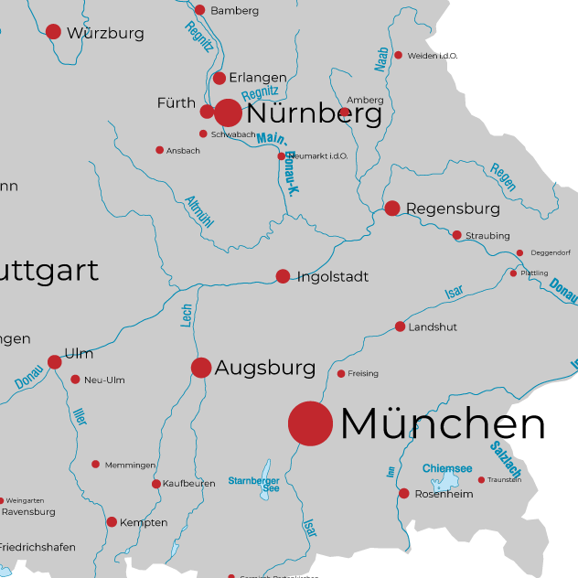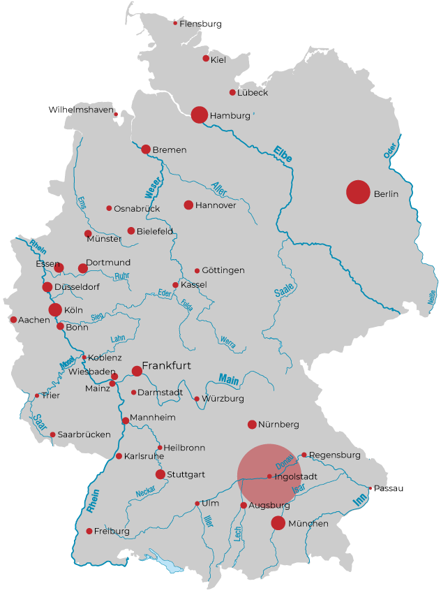 Ingolstadt ist eine bayrische kreisfreie Großstadt und ein Oberzentrum, ungefähr zwischen München und Nürnberg gelegen.