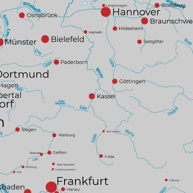 Durch Kassel fließen neben der Fulda die Drusel, die Ahne, die Losse, die Nieste und der Wahlebach.
