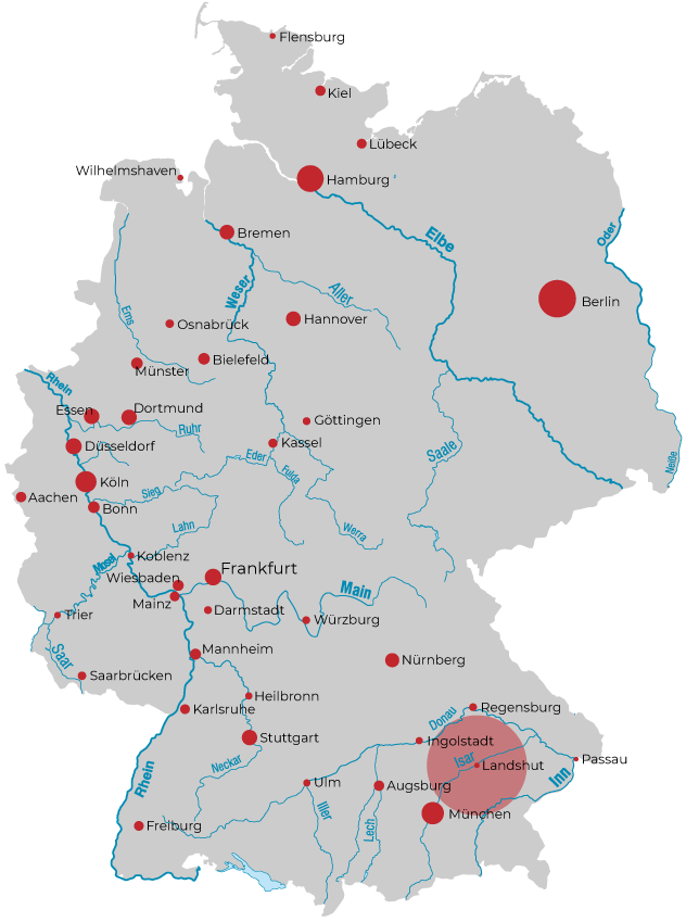Heute ist Landshut ein herausragender Wirtschaftsstandort mit rund 70.000 Einwohnern in elf Stadtteilen, die über eine hohe Kaufkraft verfügen.