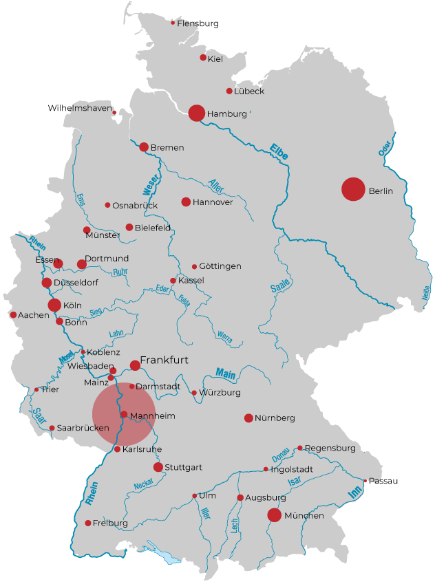 Mit heute über 307.000 Einwohnern ist Mannheim nach Karlsruhe und Stuttgart die drittgrößte Stadt des Landes und liegt im Dreiländereck an den Landesgrenzen sowohl zu Hessen als auch zu Rheinland-Pfalz.