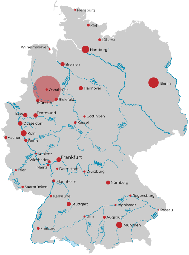 Osnabrück ist außer einer Bischofsstadt auch eine Einkaufs- und Erlebnisstadt sowie eine Universitäts- und Friedensstadt, in der Mitte des siebzehnten Jahrhunderts der Westfälische Frieden unterzeichnet wurde.