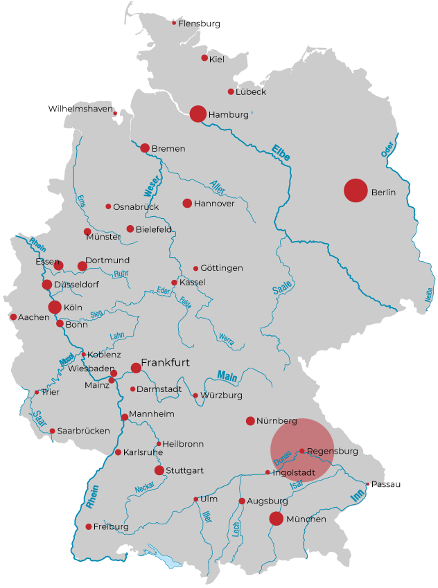 Die kreisfreie Stadt Regensburg liegt in Ostbayern am nördlichsten Punkt der Donau und ist eines von dreiundzwanzig bayerischen Oberzentren.
