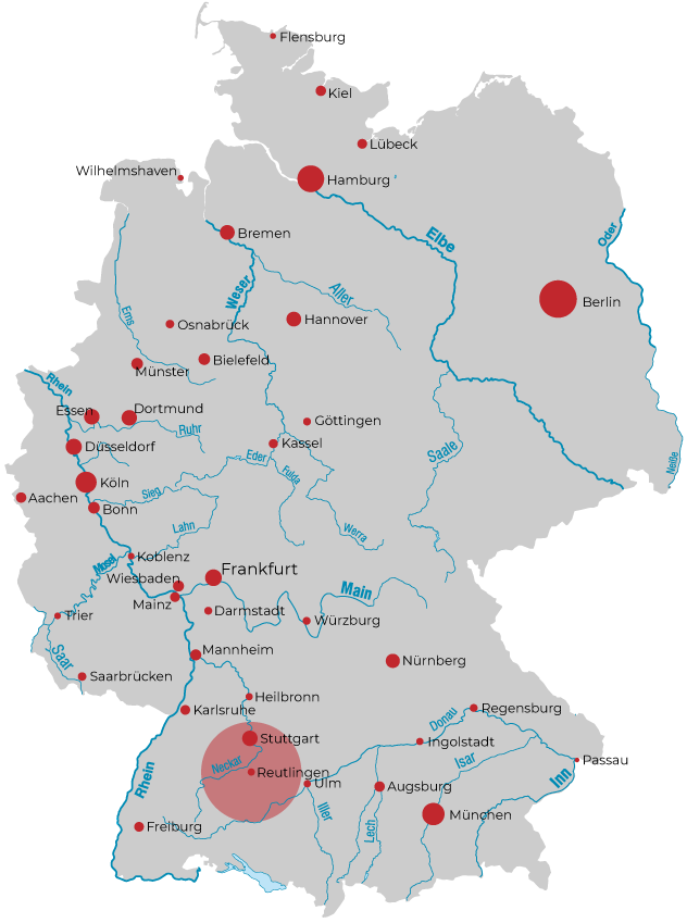 Reutlingen ist eine Große Kreisstadt und Kreisstadt des gleichnamigen Landkreises. Sie liegt etwa dreißig Kilometer südlich von Stuttgart im Zentrum Baden-Württembergs.