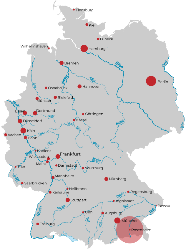 Die kreisfreie Stadt Rosenheim ist mit über 61.000 Einwohnern das wichtigste Oberzentrum Oberbayerns.