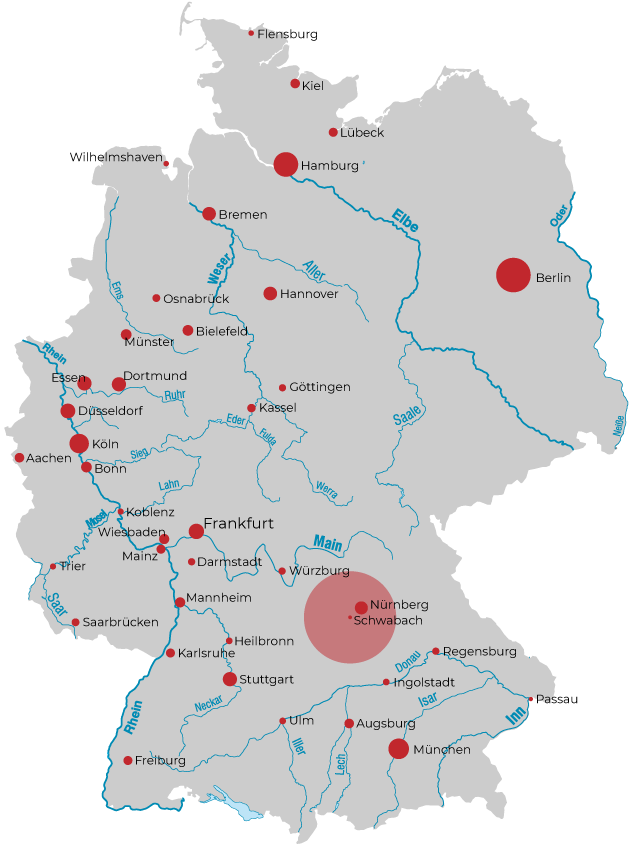 Mit ungefähr 40.000 Einwohnern ist Schwabach Bayerns kleinste kreisfreie Stadt.