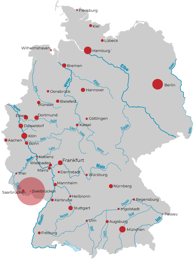 Zweibrücken ist mit über 36.000 Einwohnern die kleinste deutsche kreisfreie Stadt. Sie liegt in der Südwestpfalz im Bundesland Rheinland-Pfalz an der saarländischen Grenze und nur wenige Kilometer von der französischen Grenze entfernt.
